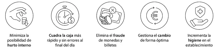 Una solución tecnológica inteligente y fiable que te aporta tranquilidad al minimizar los hurtos internos y con la que ganas tiempo al acabar con los interminables cuadres de caja.